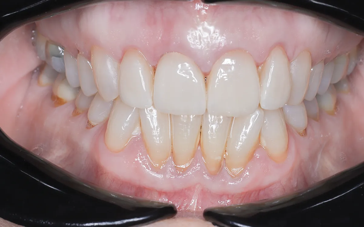 We then restored her smile from teeth 12 to 22, extending beyond the front two teeth to create a more seamless, balanced, and natural-looking result across her entire smile line.